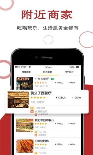 2、用户可以在线上查找当前附近的商家,可以查找各种生活服务,吃喝玩乐全都有;