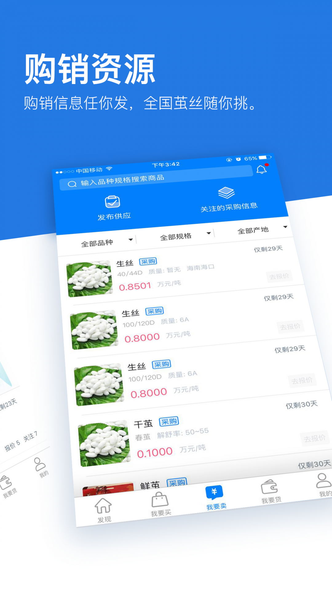 丝路通——领先的一站式茧丝大宗交易平台,互联网加大数据助力茧丝供应链生态圈再升级。用户使用一个手机号码,即可在平台上进行信息发布、商品查询、确立订单、签订合同等交易活动,让你的大生意变得更容易。