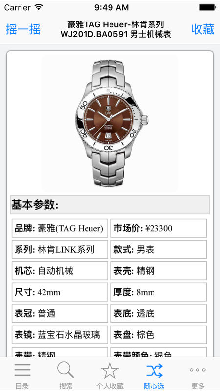 名表大全为广大腕表爱好者、消费者提供最大最最全面的腕表信息。 软件目前共收录70个品牌,近2万款手表, 从顶级奢华到时尚亲民等应有尽有, 后续还会持续补充内容和更新, 每款手表提供精美图片、详细参数等信息, 每个品牌都提供了详尽的品牌历史介绍, 同时软件提供强大的搜索功能以及便捷的浏览方式, 是不可多得的随身手表参考应用! 所有内容为离线浏览, 不需要消耗联网流量。