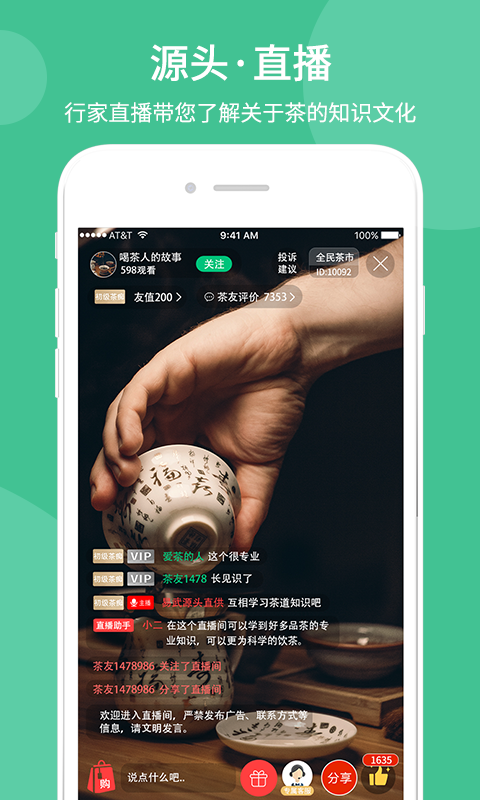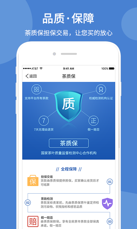 全民茶市app是一个以全民喝茶为出发点,切合茶友的实际需求而专门开发的一款中国茶行业社交直播电商服务平台,提供7天无理由退换货、第三方担保交易服务和假一赔百等多重信心保障,这是全民茶市在行业领域郑重提出的承诺。