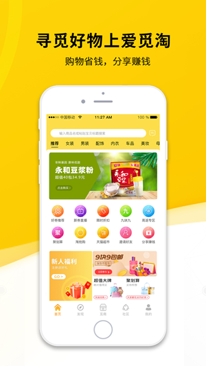 爱觅淘app是一款很不错的购物省钱软件,爱觅淘app提供大量的购物优惠劵,爱觅淘app海量的商品都可以打折选购,购完立返,非常划算的一款购物app,喜欢的朋友欢迎下载使用。