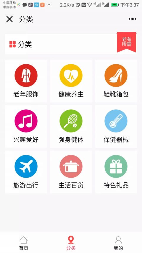 “老有所需”小程序向中老年朋友全方位推荐便捷、高品质的中老年商品,用专业服务和内容场景,打造多元化的中老年一站式购物体验平台.
