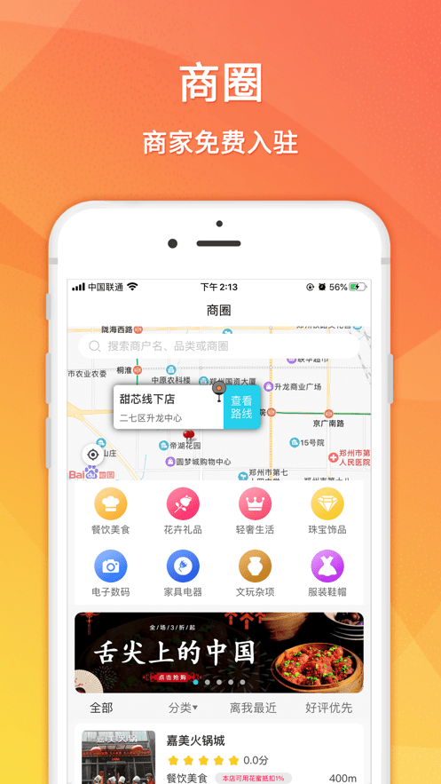 利用互联网+新兴技术把线下、线上完美结合呈现给大家, 让消费者能够精准的定位到联盟商家的具体位置,观看店铺动态和商品简介、相关好评以及商城内互动交流。