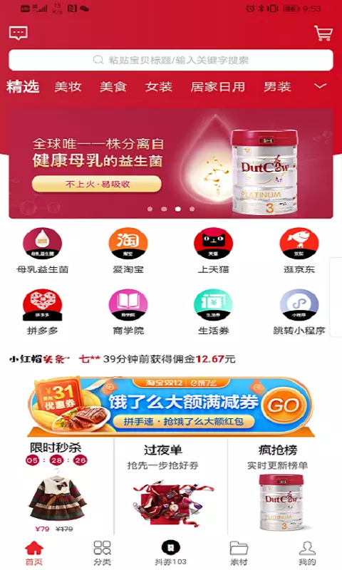 2.包括每日推荐、精选优品、一元秒杀、白菜价、好单库、9.9包邮、直播间、商城返利等各个模块,每天更新上万件优质商品。