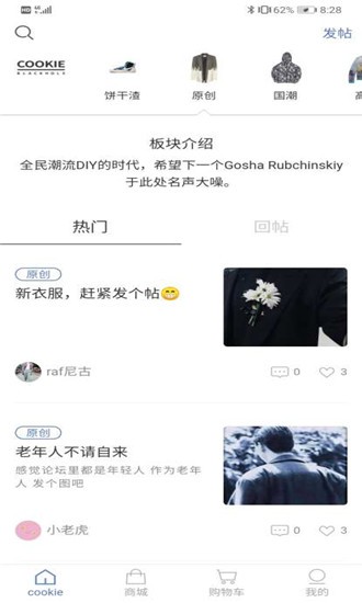 COOKIE潮流黑洞定位氛围为“深度、硬核、热爱”, 社区根据穿搭风格与潮流生活方式划分,为年轻时尚爱好者提供兴趣爱好聚集地。同时引入国外流行时尚文化,鼓励潮流市场向多元化发展。