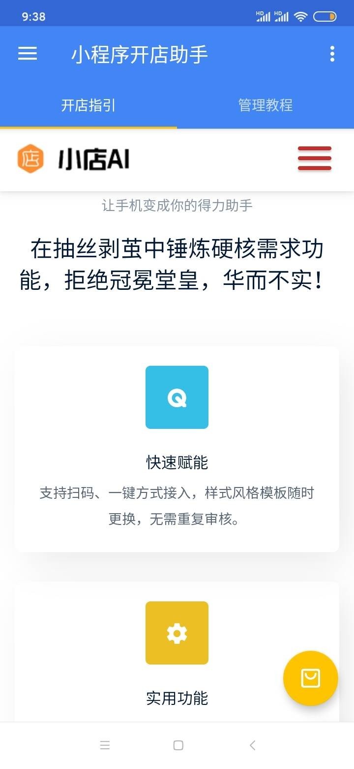 小店AI微信小程序开店助手,专注于为小微商家提供微信小程序快速接入功能,让商家能在最低的门槛就可以拥有自己专属的小程序,完整简化的小程序智能接入流程,大部分功能只需自助即可简单完成小程序上线,从而快速进行部署运营。