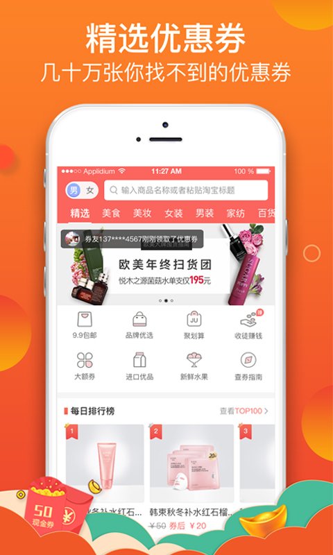 神奇优惠券 - 独家隐藏-淘宝优惠券,2-5折品牌优惠券,领券购买天猫,淘宝,京东等商品立即省50%以上【功能亮点】1 加入就送现金红包3-10元。2 只需逛神奇优惠券APP即可赚钱,每天几分钟轻松赚快钱。3 邀请好友好友额外再拿8.8元,邀请越多赚得越多。