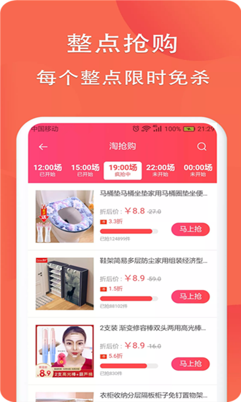 并且根据用户的主流购物习惯设置好店,达人说,9.9包邮、排行榜、疯品牌店、高佣榜等栏目等用户浏览量比较大的板块!