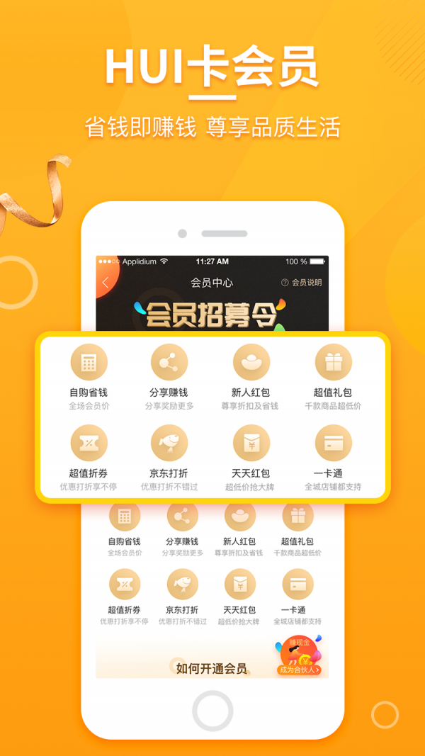 HUI校猿app是一个让您省钱和赚钱的生活APP,我们的目标:一所学校,一个HUI校猿,一种生活方式。HUI校猿app专注于会员制服务,专心每一天,为会员寻找发现身边好的服务和产品,只为您尊享品质生活服务。