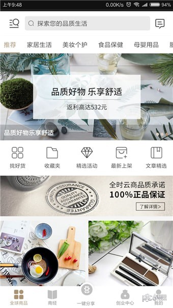全时云商app的品类涵盖家居生活、美妆个护、食品保健、母婴用品、服饰鞋包、果蔬生鲜等上万种正品好货,为创业者提供采货、仓储、上架、物流、售后、培训等一揽子服务。