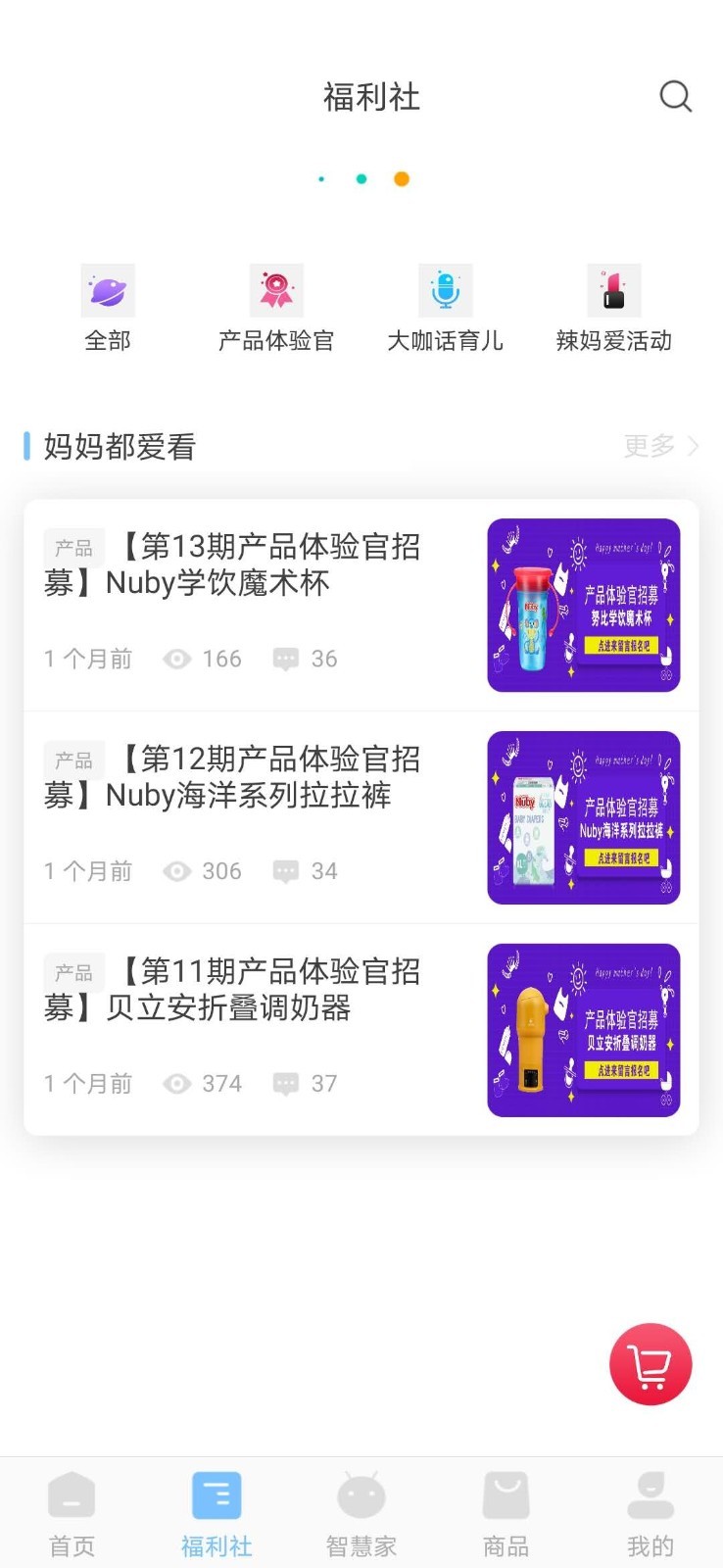 丰富的社群交互活动,大咖话育儿分享、积分商城兑换礼品、多重粉丝福利;更有机会参与线下专业妈妈课堂。