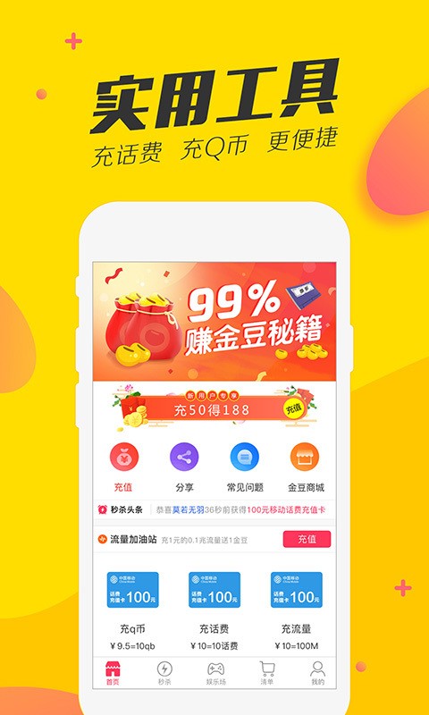 【实用性强】充话费充流量充QQ币,操作简单到账极速,真正的生活小帮手;