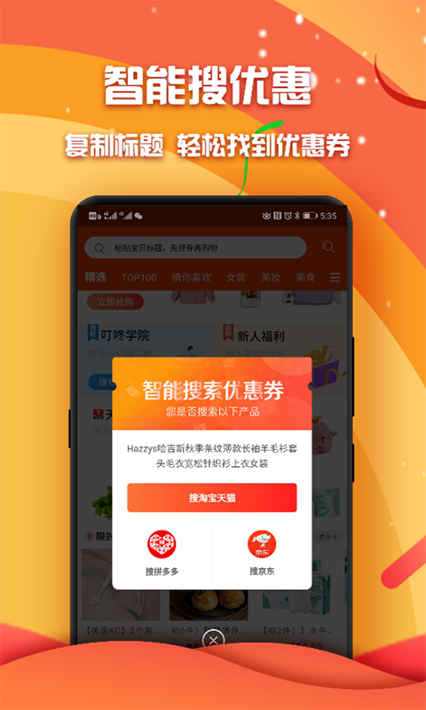 【一键找券】输入心仪商品名称或者复制淘宝天猫商品标题,就可轻松找券,搜集全好货,领大额优惠券省钱