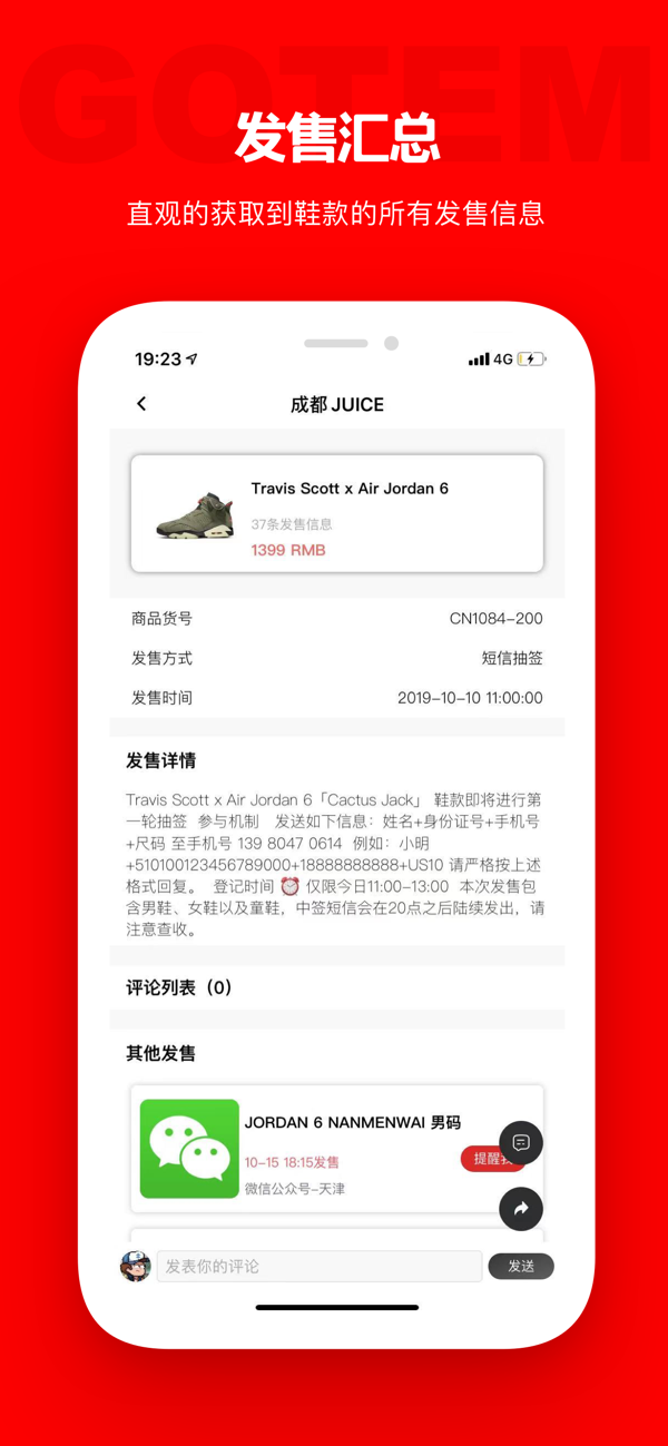 GOTEM app是一款实时监控热门球鞋发售信息的客户端应用,GOTEM软件上用户可以第一时间看到潮鞋发售和补货通知,实时抢鞋,GOTEM助力用户用原价买到喜欢的球鞋。