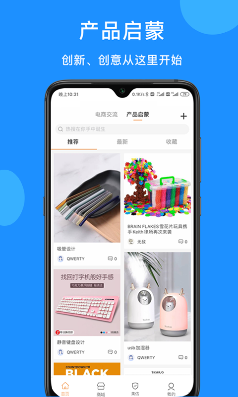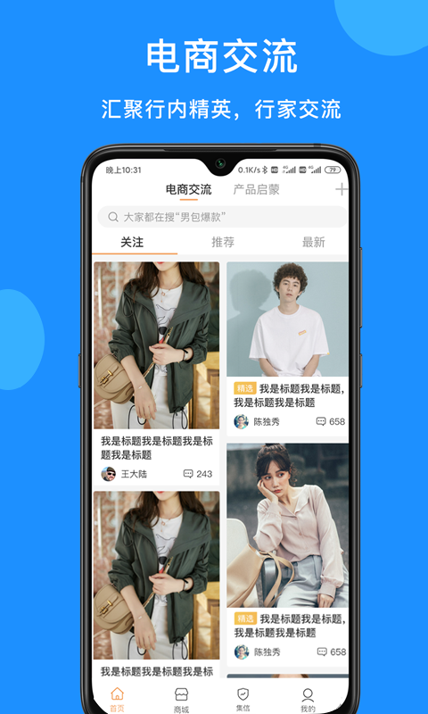 电商交流——汇聚行内精英,高手交流产品启蒙——创新、创意从这里开始集货——让理想与梦想成真的地方两元轻奢购——谁说好的东西一定贵集信——诚信交易放心买卖,集信撑你