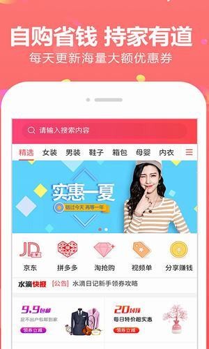水滴日记app是一个购物领券省钱的电商平台,水滴日记app用户不仅可以每天领取海量产品的优惠券,水滴日记app分享给好友下单,你还能会的高额的返利哦,而且平台还经常有各种优惠活动。