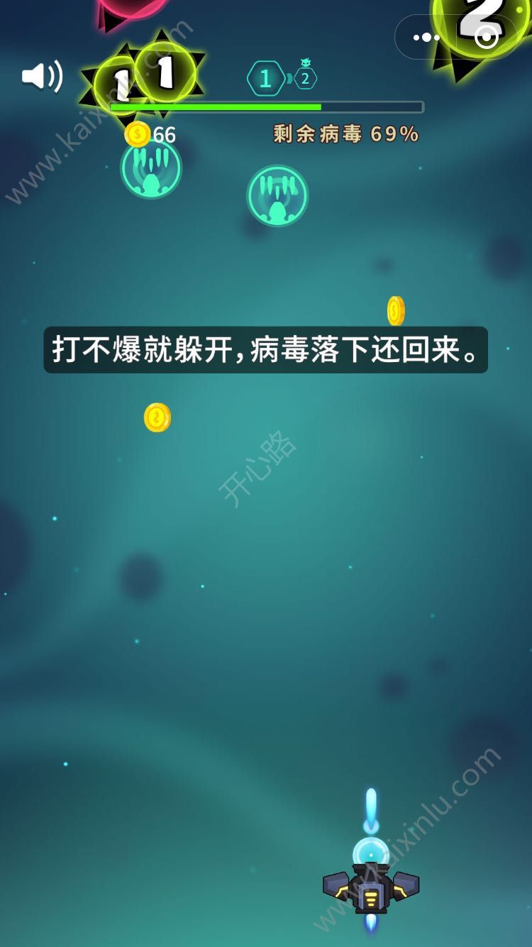 2、不断地冒险,不断地秀出你的风骚的走位来躲避病毒的碰撞。