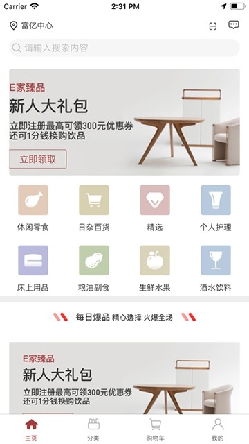 涵盖生鲜水果、粮油副食、床上用品、个人护理、日杂百货、酒水饮料、休闲零食等全品类精选商品,上千款精选食材,每周上新新品。