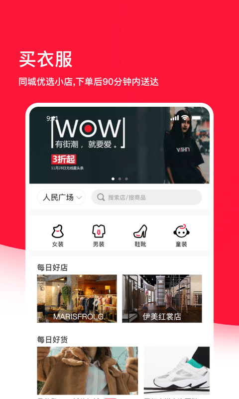 【街逛】将你同城的街边小店搬上云端,为你打造快速的同城购衣体验,做你的个人随身衣帽间;试穿不喜欢极速退款,下单后60分钟内必达,免配送费。