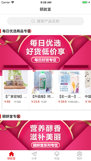 颐啟富app是一款为用户推荐的购物平台,颐啟富app里的商品种类费的齐全,用户通过颐啟富app能够很好地在线购物,全场包邮,直销产品,绝对都是正品保证。