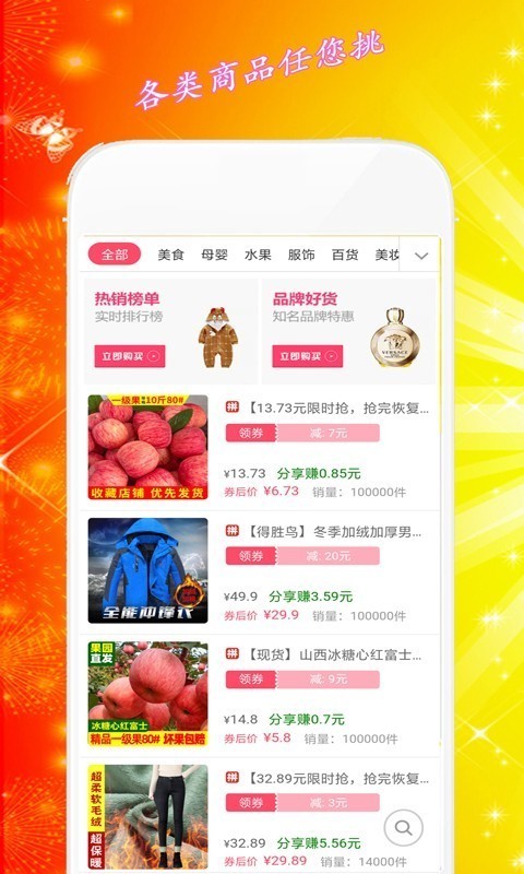 千余家知名品牌,服装、美妆、居家、母婴、食品、鞋包、数码电器任意返!