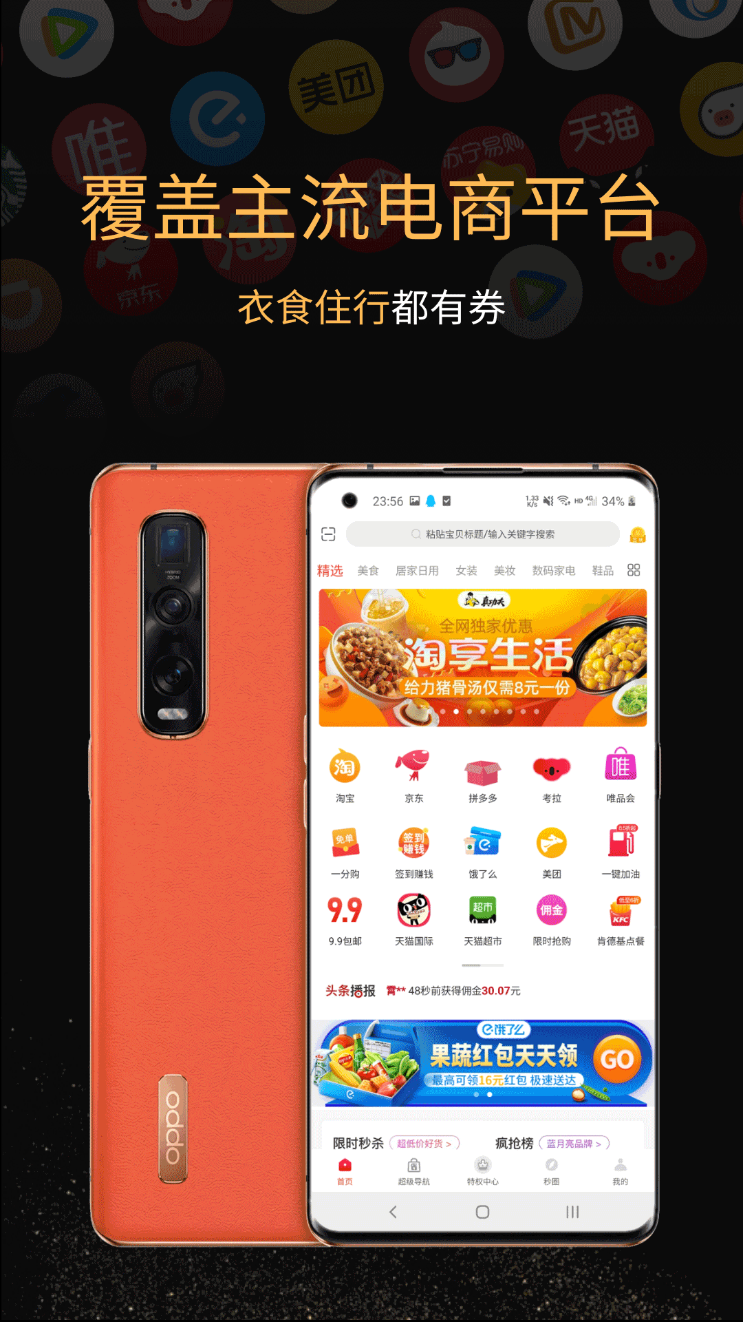 1、平台超全,覆盖各大主流平台,通过秒券先生可以查询各个商品的内部优惠券,各种商品任你挑选!
