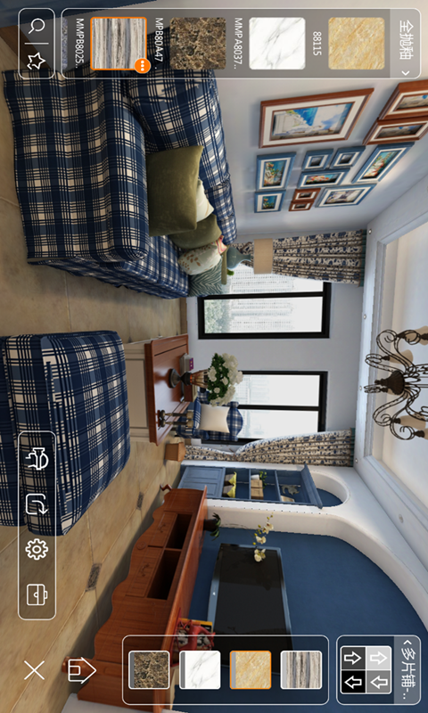 1、有上千样板房供用户选择并对其进行更换瓷砖应用效果展示;