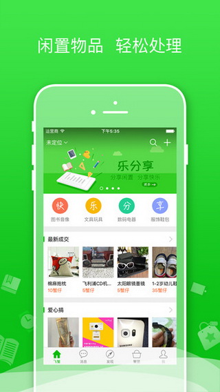 “飞蟹”是一个闲置物品分享社区。用户可以在这里发布自己的闲置物品,免费分享给有需要的其他用户,同时也可以免费获得其他用户分享的闲置物品。