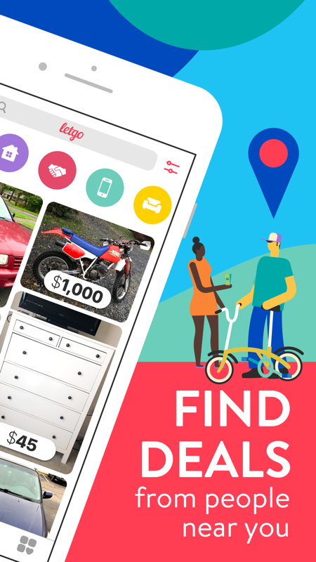 • EASY, SLEEKINTUITIVE: letgo shows you great deals nearby on a huge variety of items. Browse your areasearch for something specific. Chat instantly with other buyerssellers right in the app.
