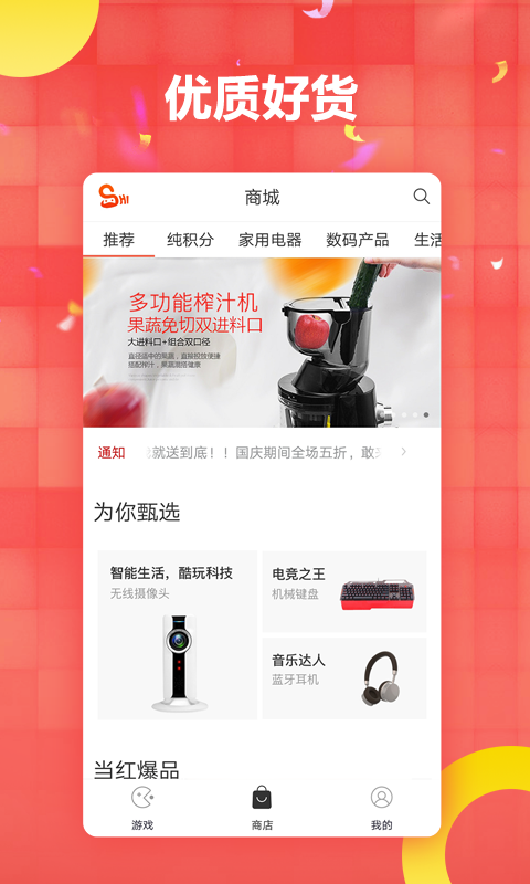 【每日登陆送积分,海量商品任你轻松购】每日登陆送积分,八时内富含海量商品,积分可以抵扣一部分商品现金价值。【多快好省,优质生活】货真价实,超快物流。给您的购物带来不一样的体验。不必担心你的快递会中途玩失踪。