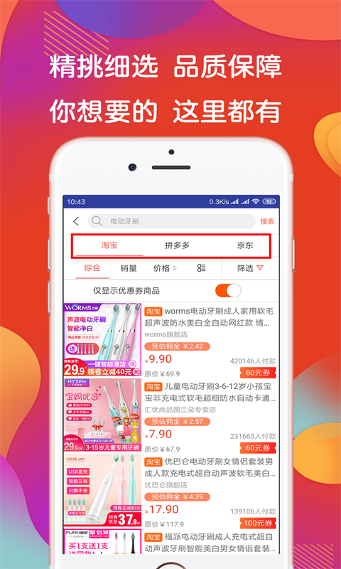 网购省钱工具!先领券后购物,购物更省钱!精选海量特价好物和大额优惠券!让你买得舒心!省钱同时还能通过分享商品赚钱,赶快来下载吧!
