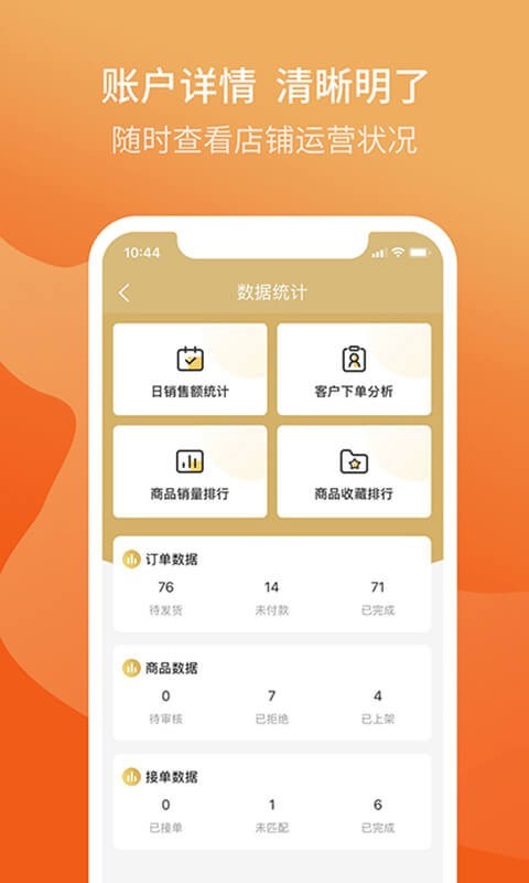 锦艺搜布卖家APP是一个为服装面辅料商家服务的B2B软件,提供了添加商品、订单管理、模特试衣、报表管理等功能。
