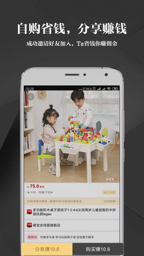 每日海量折扣券商品更新,购物省钱,分享赚钱