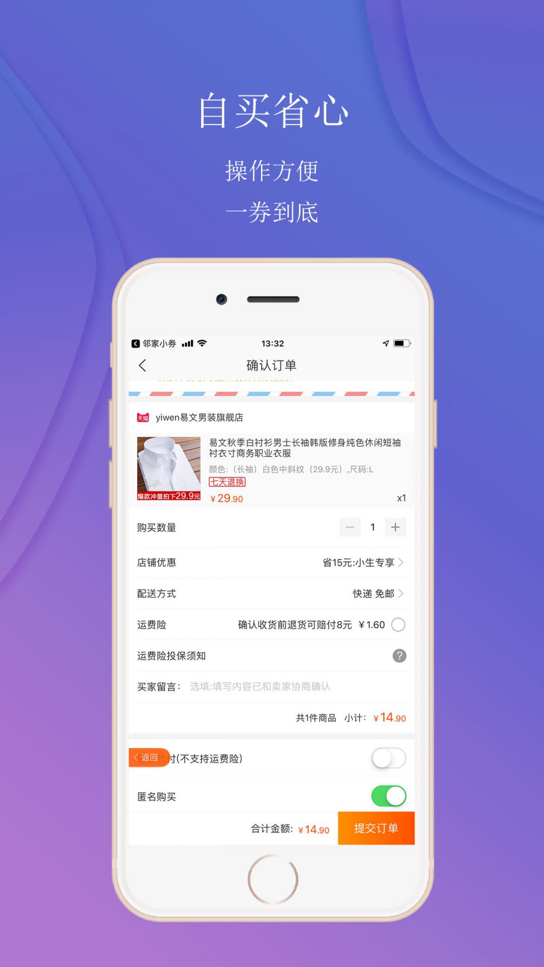 邻家小券,方便生活,学生,上班族,宝妈必备APP。邻家小券,每天都有新的惊喜,好的APP,大家分享使用。