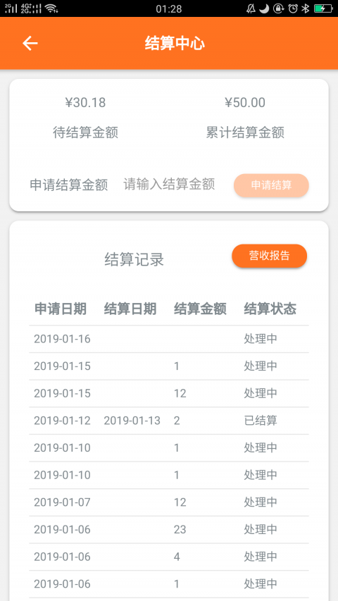 【结算中心】:查看商品发放所获得的收益,并可线上申请结算