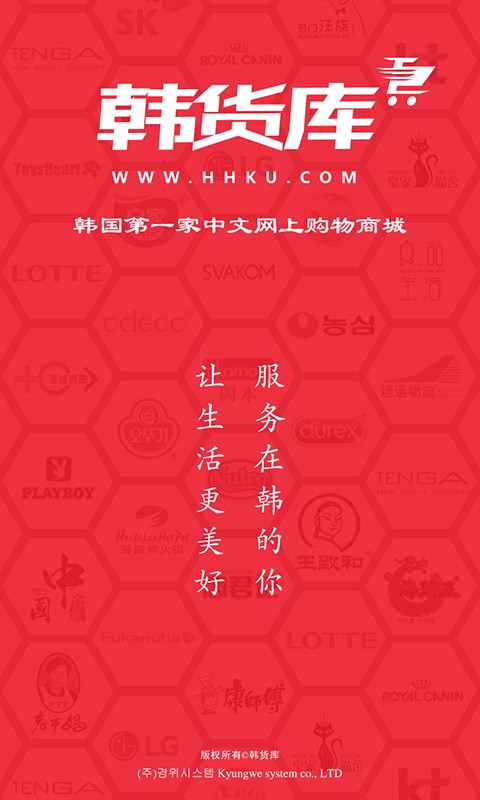 韩货库——韩国地区纯中文大型综合购物商城,华人自已的购物商城,专为韩国的你服务! 韩货库APP是一款专为韩国的华人提供商品、服务、咨询的移动购物软件。告别语言、物流、售后的障碍,为韩国的你打造简单、便捷、快乐的生活体验。