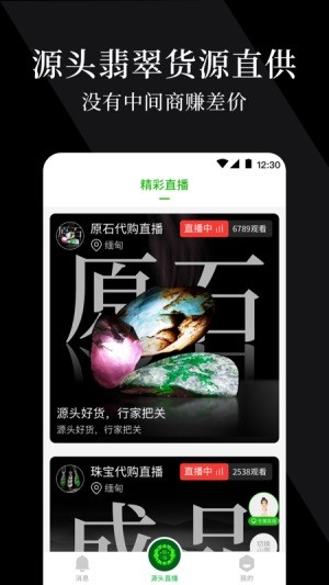 翠播app是中国领先的专业翡翠源头直供平台,直供翡翠源头产地,直播看好货,提供第三方鉴定担保交易服务,为广大消费者带来超值、保真的一手好翡翠。还有资深主播源头一对一讲解,为爱玉识玉的每一位用户提供高品质服务。