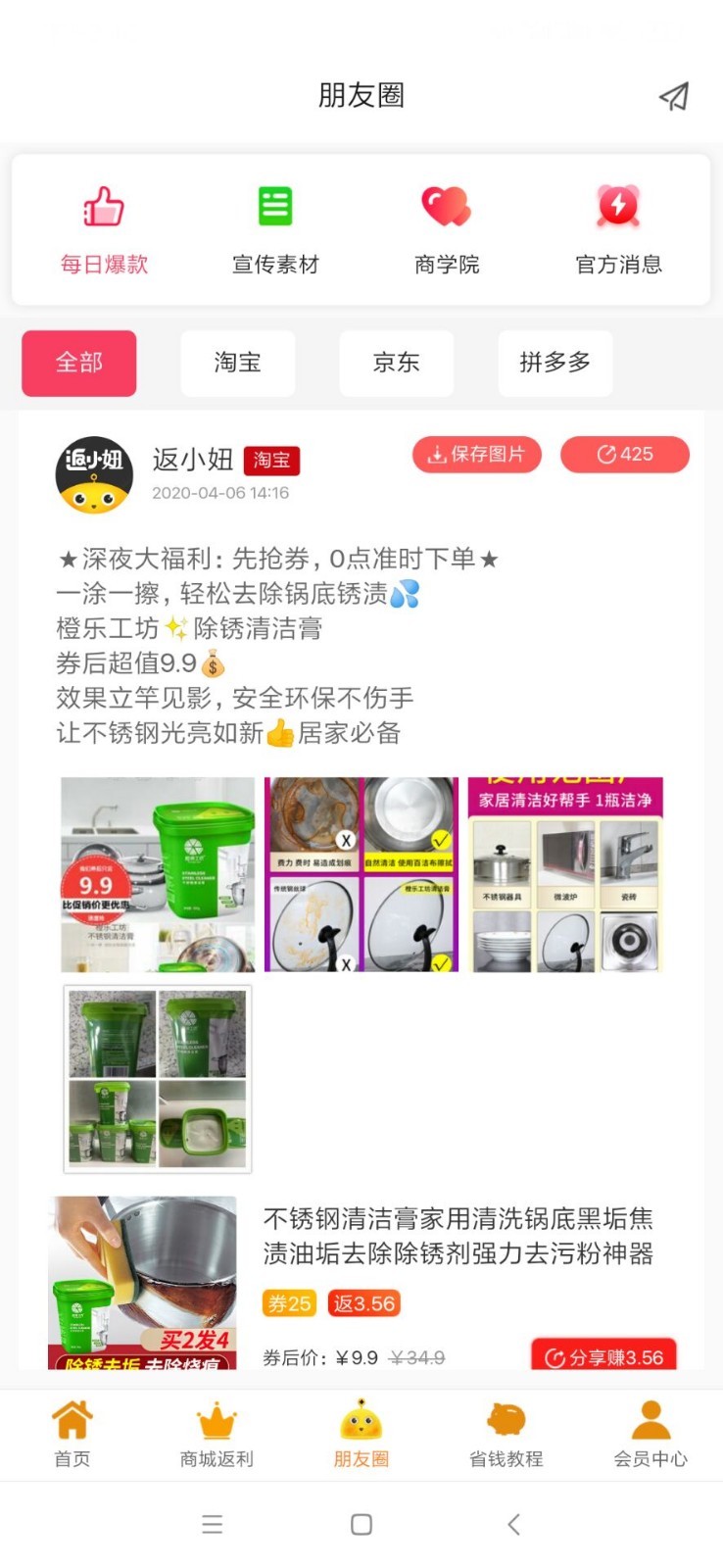 返小妞是一款专注省钱的手机购物APP,包含淘宝、天猫、京东、拼多多、唯品会海量优惠券。会员在返小妞以0.1到5折的低价抢购产品后,参与晒单分享,返小妞作为集用户营销、活动营销、口碑营销、商品营销为一体的营销导购app。