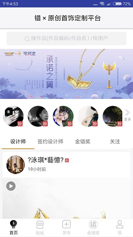 错原创首饰app是一个原创首饰定制平台,错原创首饰app提供原创首饰设计、原创首饰交流、原创首饰定制与交易服务,满足用户个性化需求。