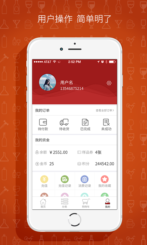 2、荟酒网与PC端同订单、购物车操作,连接同一数据库,手机即可操作电脑端账户,更清楚直观的展示与操作。