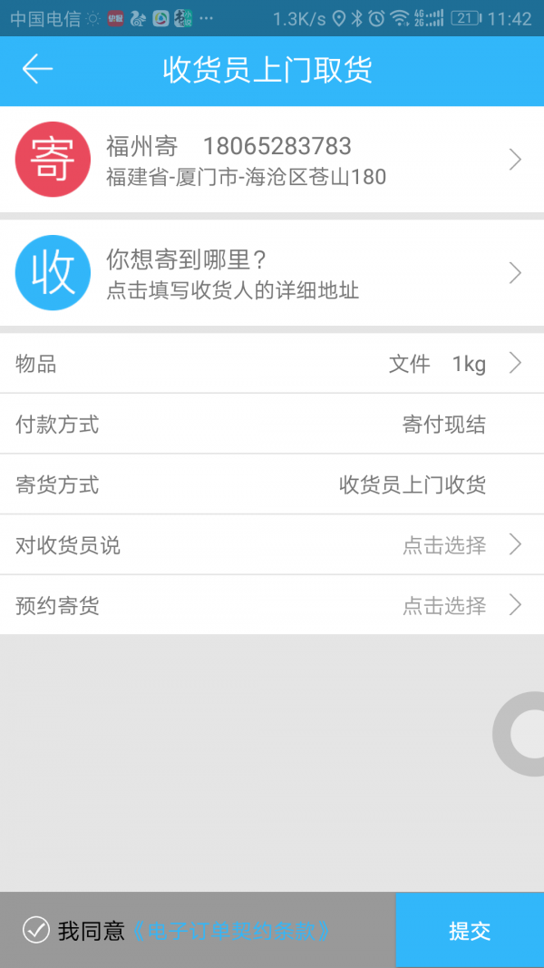 (1)用户端:用户自主下单,预约时间,派送员上门取货。