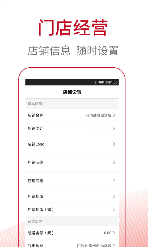 【新增】店铺设置项增加店铺海报、店铺招牌、起送金额、商品购买权限设置项