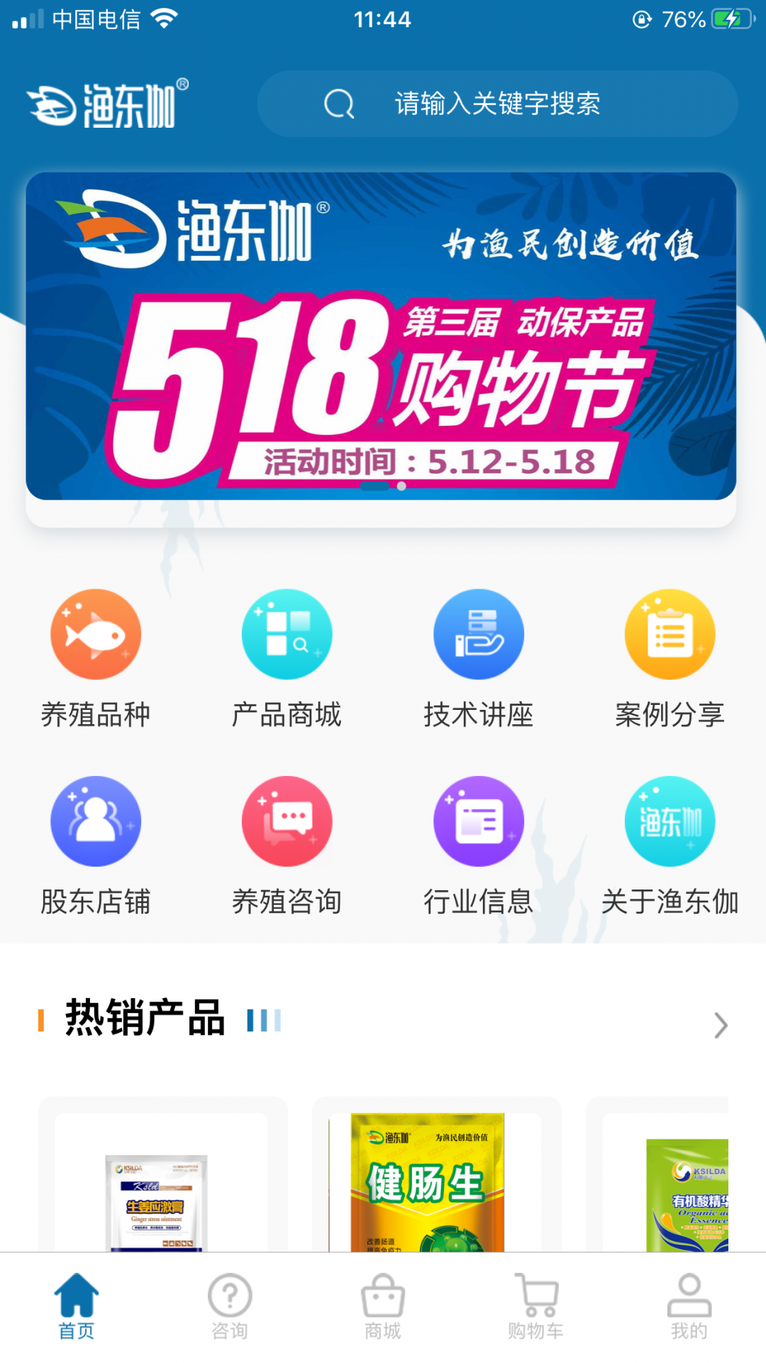 渔东伽APP是佛山市顺德区渔东伽渔业物资有限公司专门为满足水产养殖户的需求而推出的、具有水产养殖咨询和线上购物交易等功能的线上应用。