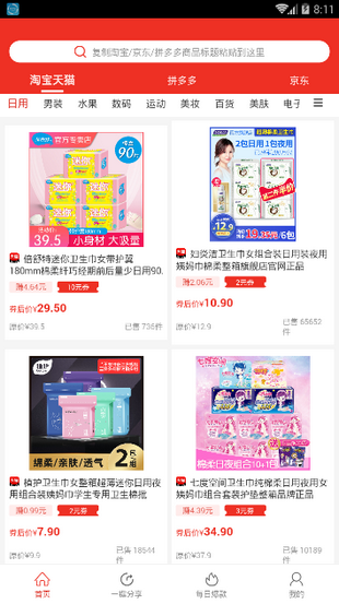 【快捷查券】复制商品标题或口令链接,打开花生日记精选APP,为您自动查找优惠券;