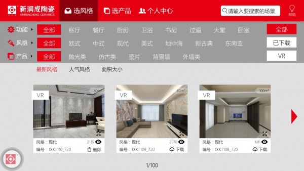 新润成陶瓷app是一款专注陶瓷行业的智能换砖软件,您可以随时随地查看真实场景效果,轻松选购陶瓷产品。