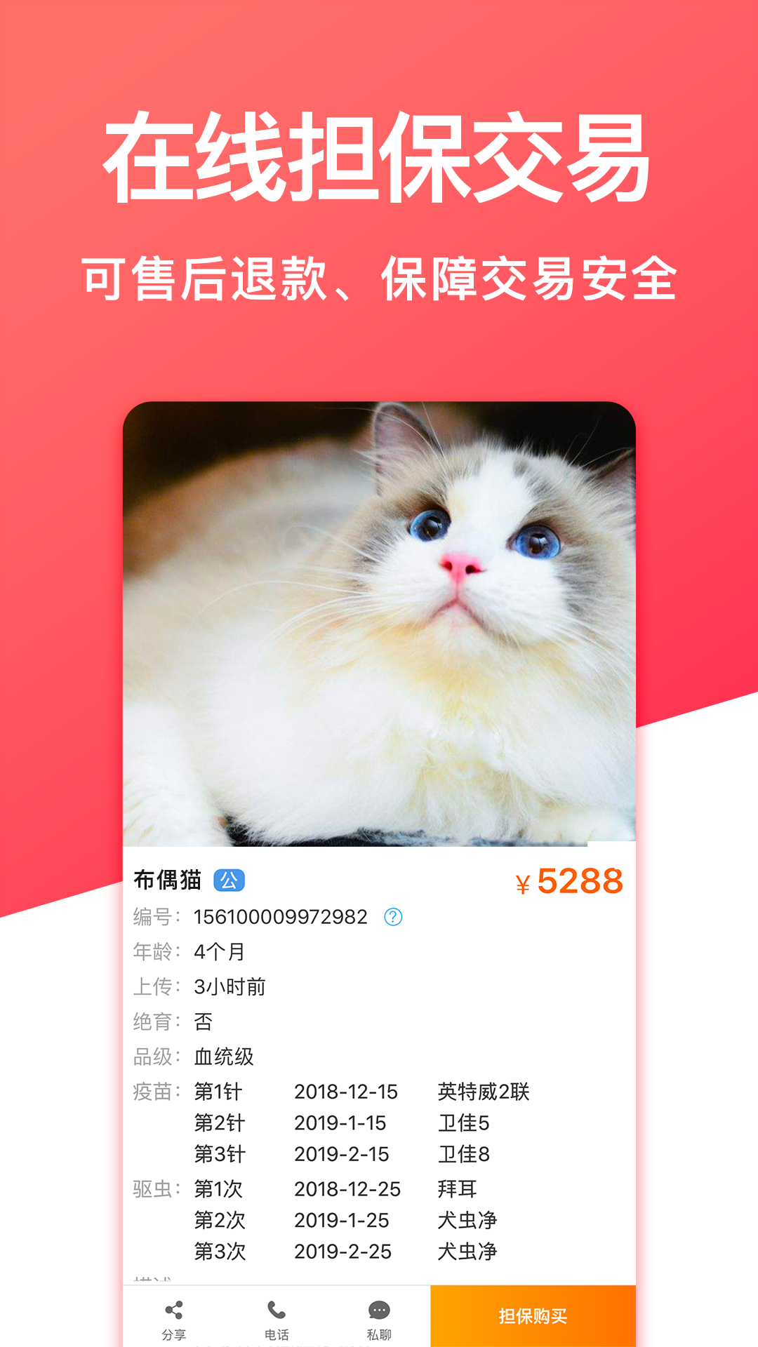宠物市场作为交易资金托管第三方,保障买卖双方权益,拒绝售后纠纷,杜绝星期狗。