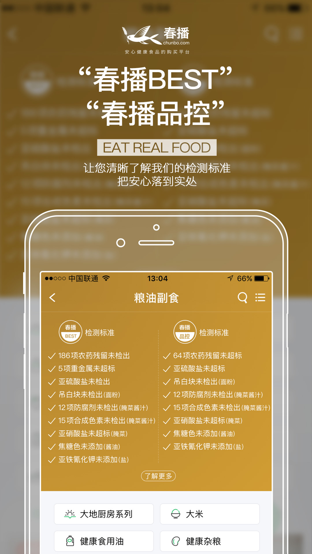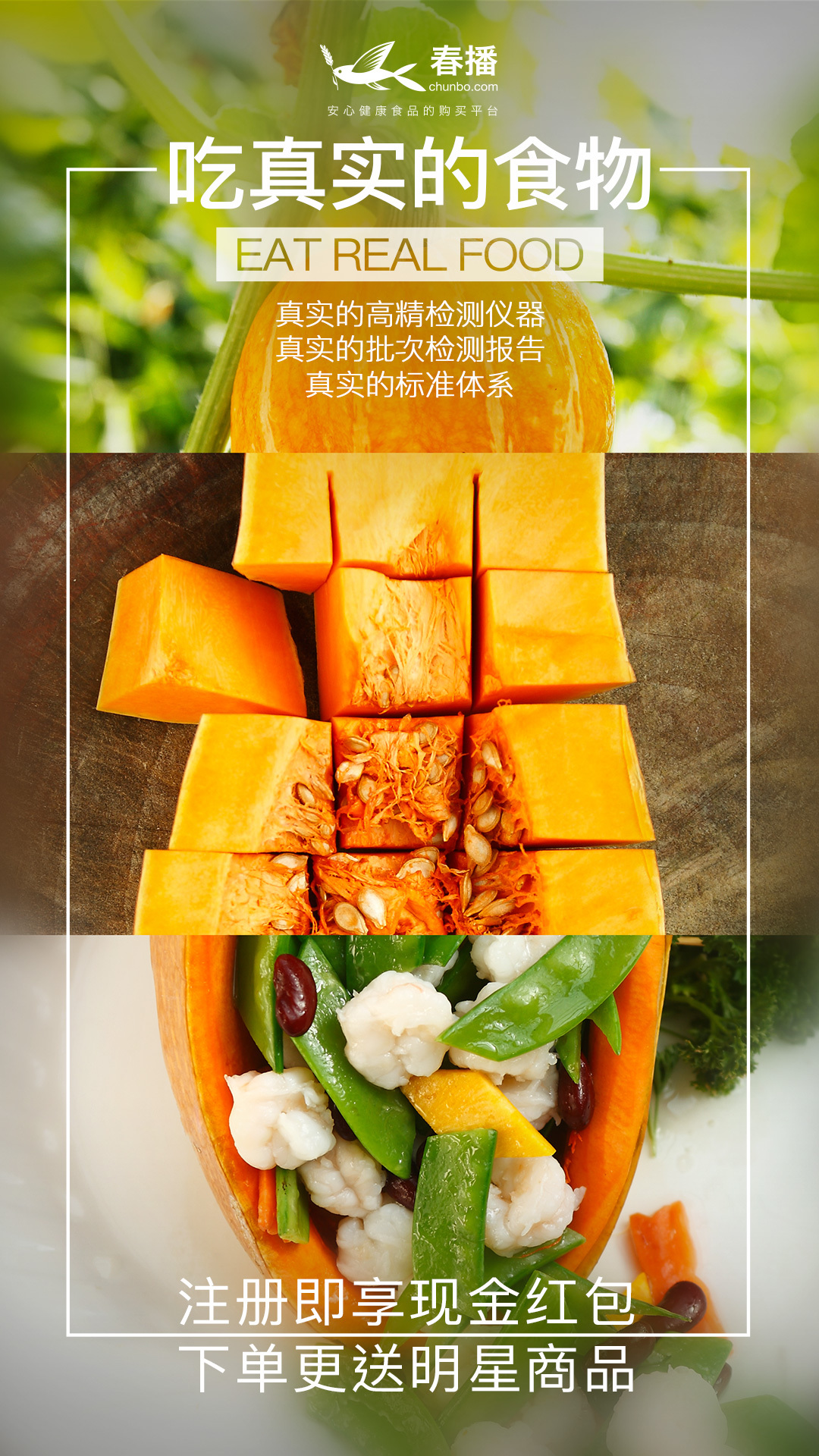 【全面升级您的餐桌安心度】春播的使命是为中国家庭提供安心健康的食材和食品,强壮爸爸的肩膀,助力妈妈的手艺,让孩子们在健康快乐中成长。当您收到一份预定的货品时,无论是烹制大餐用的新鲜食材,还是茶余饭后补充能量的休闲小食,它们都拥有“安心,新鲜,健康,美味”4个特质,缤纷美味非常适合您与家人乐趣共享。【严格的选品和检测规则】遵循“安心、新鲜、健康、美味”四大选品原则,春播实验室中配备总价值600万元的多台日本岛津精密检测仪及专业快检设备,由硕士、学士组成的专业质检团队负责对商品品质进行严格把控,并实时出具检测报告,只为您一份安心。【千种美食】我们在全球范围内为您甄选出上千种优质美食,包含水果蔬菜、肉禽蛋品、水产海鲜、安心乳品、粮油副食、安心零食、酒水茶饮、厨房面点、滋补保健、健康母婴等多种商品,快来动动食指,发现美食新世界。【精选大厨食谱】联合大董、文怡等名厨与美食大咖,为您带来美味菜谱,教您在自家厨房煎炒烹炸,享受烹饪乐趣。微博:5441211252微信:chunbo-com客服电话:400-888-8878