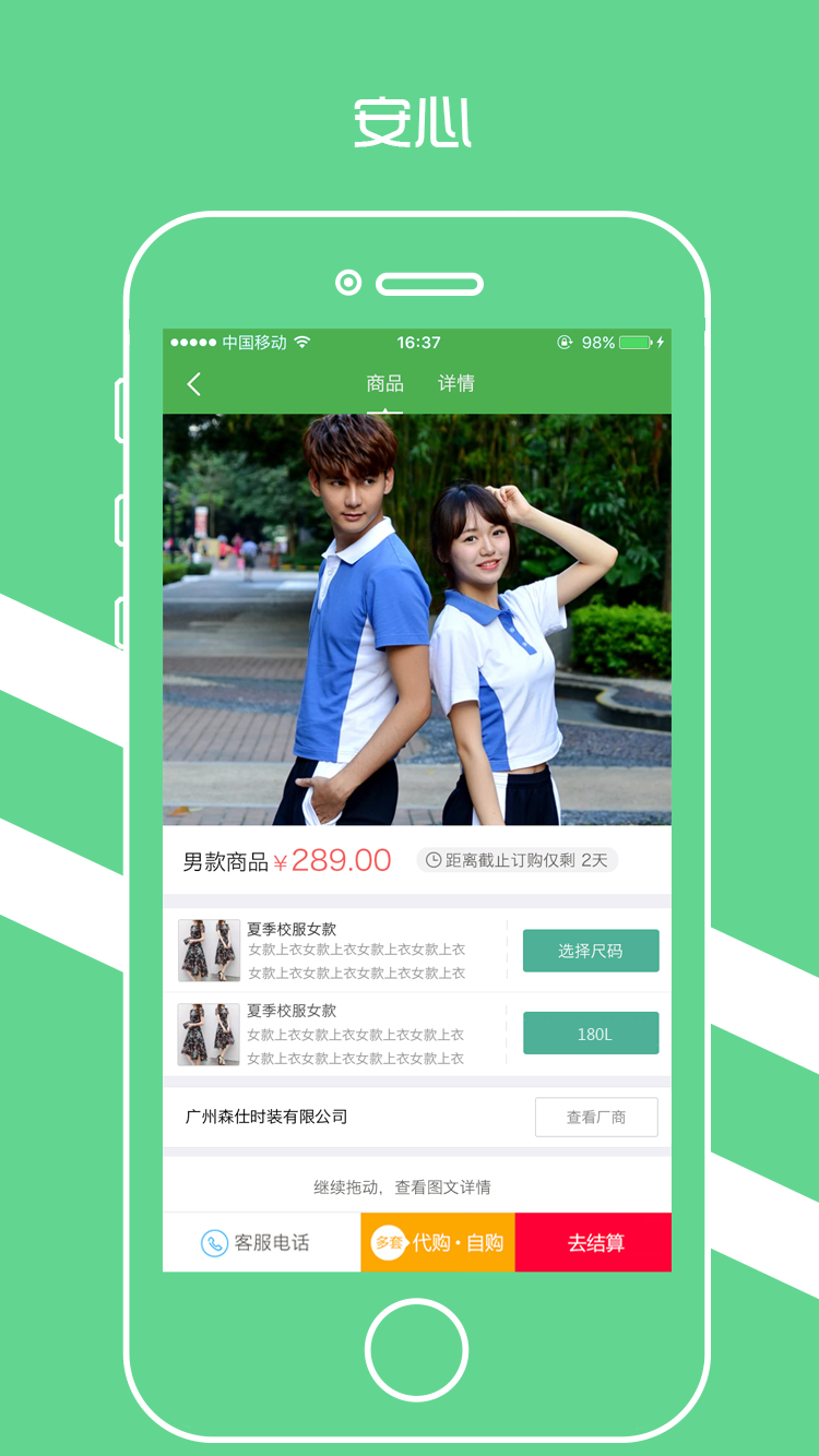 阳光智园APP是阳光美丽校服平台的移动端应用。阳光智园APP为学生及家长用户提供订购提醒、信息公示、智能选码、即时购买、订购反馈、在线客服等服务,使用安全、便捷。 阳光智园通过“互联网+校服”的创新模式,为中国校服提供从设计、购买到售后全方位服务的整体解决方案。 阳光智园APP通过公告的形式,把学校及家长委员会选择厂家的原因、资质、价格、质量在平台阳光公示,以便社会和所有家长监督,确保厂家甄选过程阳光透明。 阳光智园APP打通了家长和供应厂家之间的联系,学生、家长在网上直接购买校服并支付费用。学校不再经手任何费用,由过去的中间商(或变相中间商)角色转变为服务与监管角色。 阳光智园APP集成了公司研发的校服智能选码系统,家长输入学生的身高与体重,就智能生成学生合身的尺寸,减少学校及厂家的量身工作,确保产品的合身与质量。 阳光美丽校服平台专注创新,实现了校服购买阳光便捷,校服款式美丽合身,校服面料舒适安全。让孩子们爱上校服,让监管插上科技的翅膀!