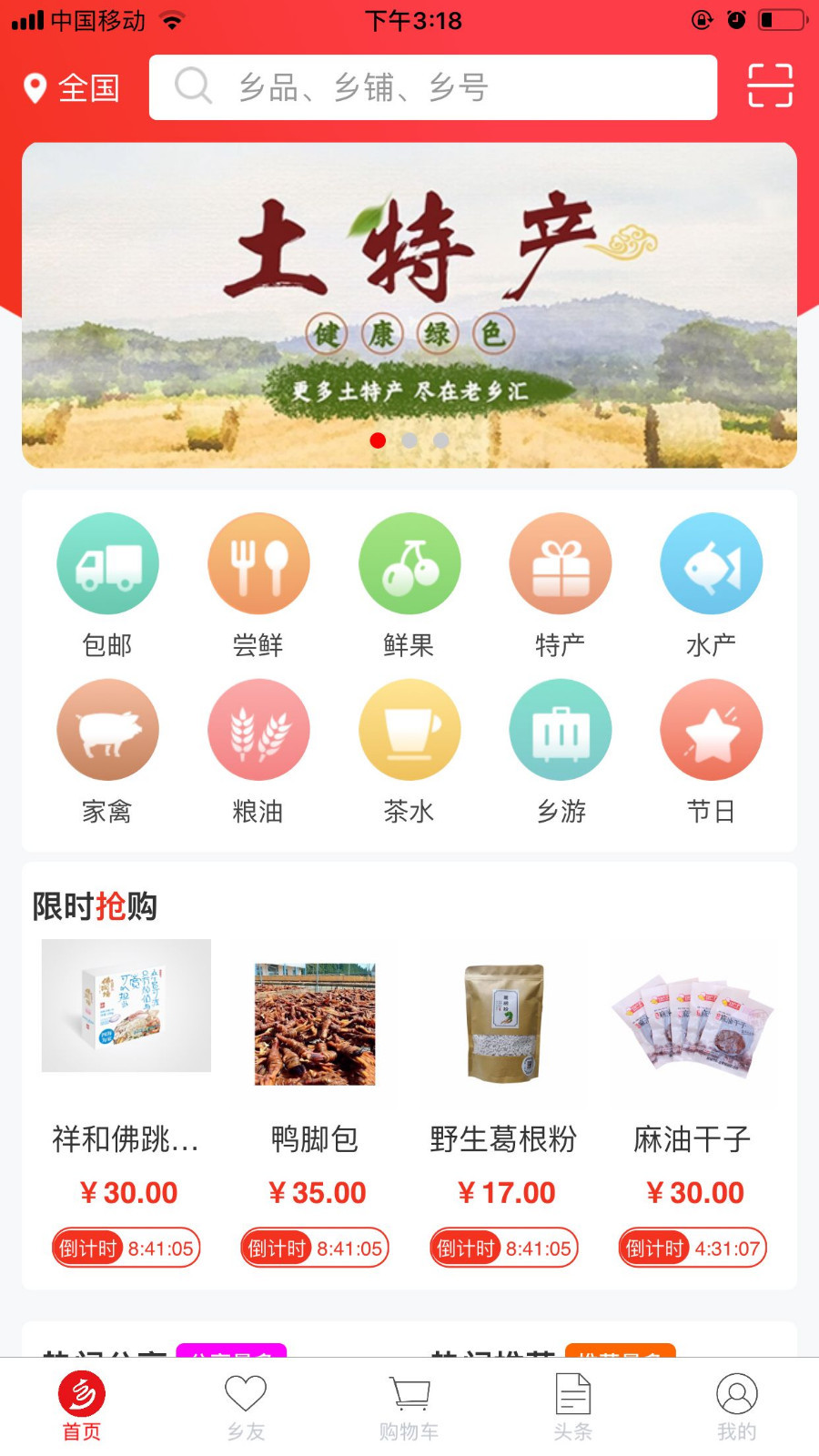 老乡汇是一个专注于地方土特产售卖的电商平台,目的是为客户提供各类精选优质的特产,从而帮助老乡脱贫致富,致力打造地方特色品牌!