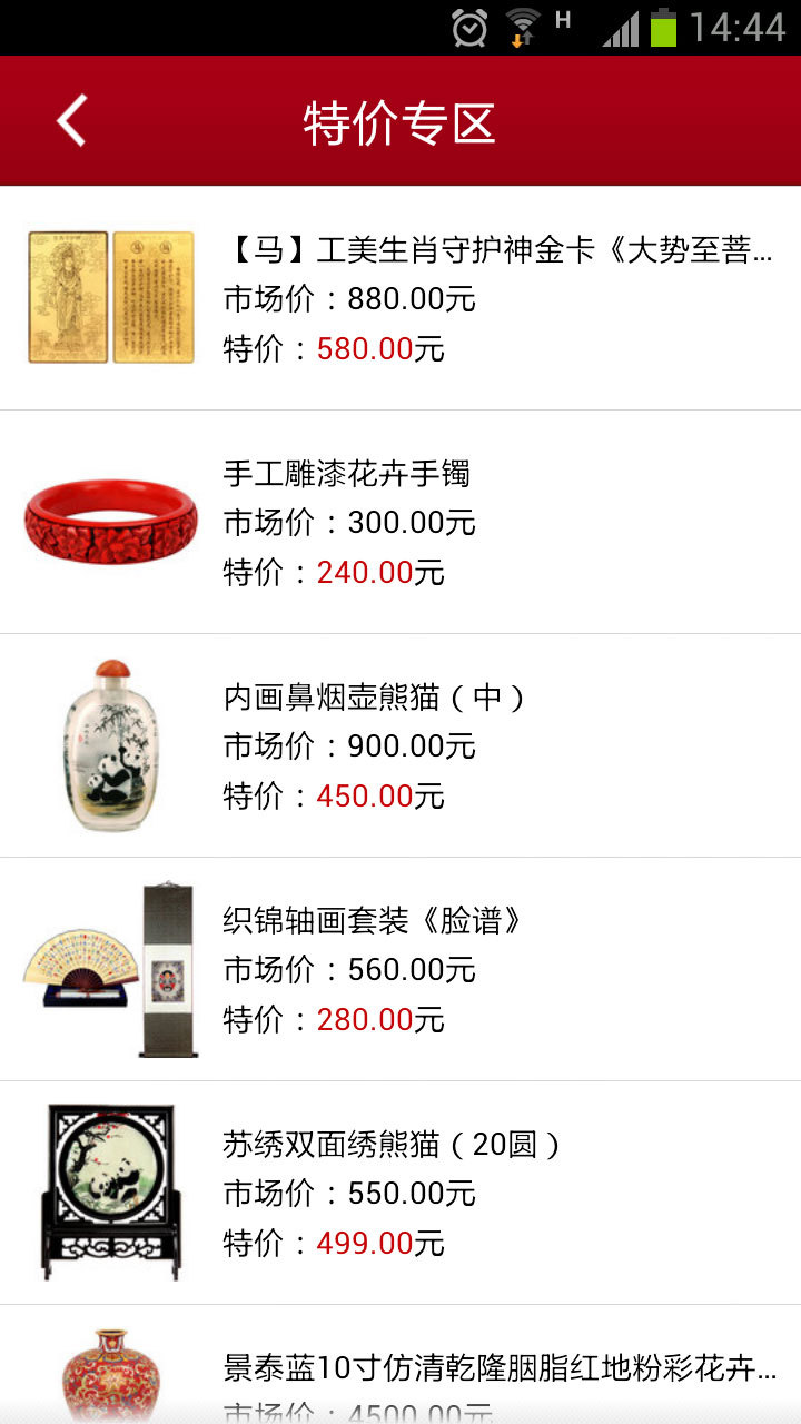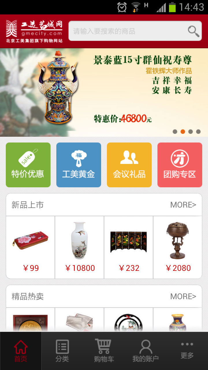 工美艺城网(安卓版)是专门为安卓用户推出的一款移动购物软件,具有商品浏览、商品购买、在线支付、订单查询、商品分享等功能,为您打造*为便利的移动购物体验。特色功能简介:1、团购专区:手机用户专享团购商品,不定期推出优惠团购活动。2、会议礼品大量会议礼品一网打尽,满足您不同礼品需求。3、特价专区:每天都有多种特价商品供您选择,让您网购更实惠。以上描述中存在违反广告法的内容,自动用*代替